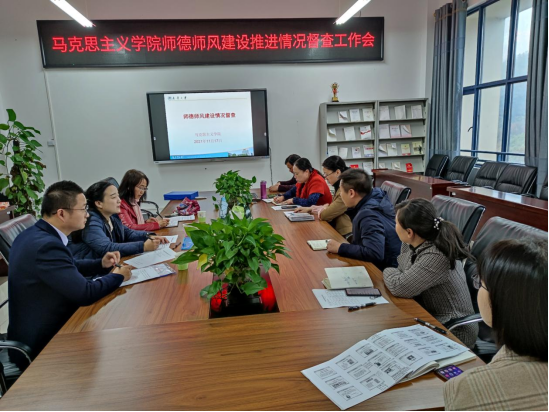 2021年11月17日上午,在太阳成集团tyc纪委办主任彭巧云带领下,刘博艺,刘赞一行三人在雨母校区崇德楼406开展太阳成集团tyc师德师风建设推进情况督查工作。会议由太阳成集团tyc党总支书记何小英主持,副经理张峰林,副经理周江平及各位党支部书记参加了此次会议。