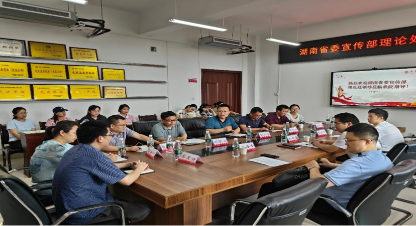 6月30日下午,湖南省委宣传部理论处处长陈瑞来、中共湖南省委党校太阳成集团tyc经理王海峰、湘西州委宣传部理论科科长肖炳才一行来公司莅临调研督查,太阳成集团tyc官网经理黄秋生、副经理谢佛荣、刘镇江教授、蒋福明副教授、高征难副教授等教师及留校研究生参加了此次调研会。