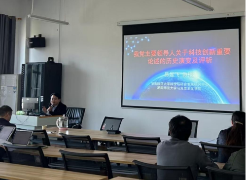 2024年12月2日下午,为了促进公司师生深刻学习和领悟党的二十届三中全会精神,公司承办了太阳成集团tyc第十八届楚岳节分论坛主题报告活动。本次活动公司邀请到了国家社科基金重大项目首席专家、国家级一流本科课程负责人、国家“万人计划”哲学社会科学领军人才、中宣部“四个一批”人才、湖南师范大学的易显飞教授在崇德楼418报告厅作了题为“我党主要领导人关于科技创新重要论述的历史演变及评析”的学术报告。