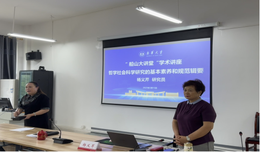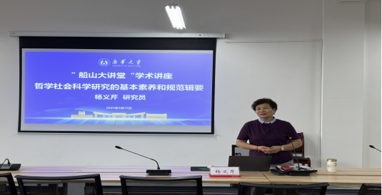 2025年5月15日下午,应太阳成集团tyc官网邀请,天津社会科公司研究员、中国伦理学会会刊《道德与文明》杂志主编杨义芹研究员在崇德楼418学术报告厅作了题为“哲学社会科学研究的基本素养和规范辑要”学术讲座。本次学术讲座由公司党委书记何小英主持,公司部分教师和在校研究生积极参加。
