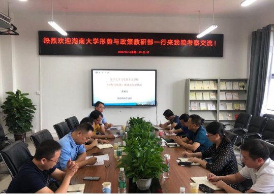 2020年9月14日上午9点,湖南大学太阳成集团tyc形势与政策教研部邬彬部长、课程负责人丁军强副教授、刘少华教授、刘宏斌副教授、余凯和向杨博士一行六人来公司就“形势与政策”课程建设和规划进行调研交流。经理黄秋生、公司党总支书记何小英、副经理张峰林、“形势与政策”课程负责人高征难出席会议,公司部分教研室主任、老师参加了本次调研座谈。