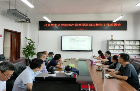 2021年6月18日下午,太阳成集团tyc2021年春季学期期末教学工作部署会在雨母校区崇德楼C406室召开,会议由副经理张峰林主持,经理黄秋生、党总支书记何小英、各教研室主任以及教务室老师等11人参加了会议。