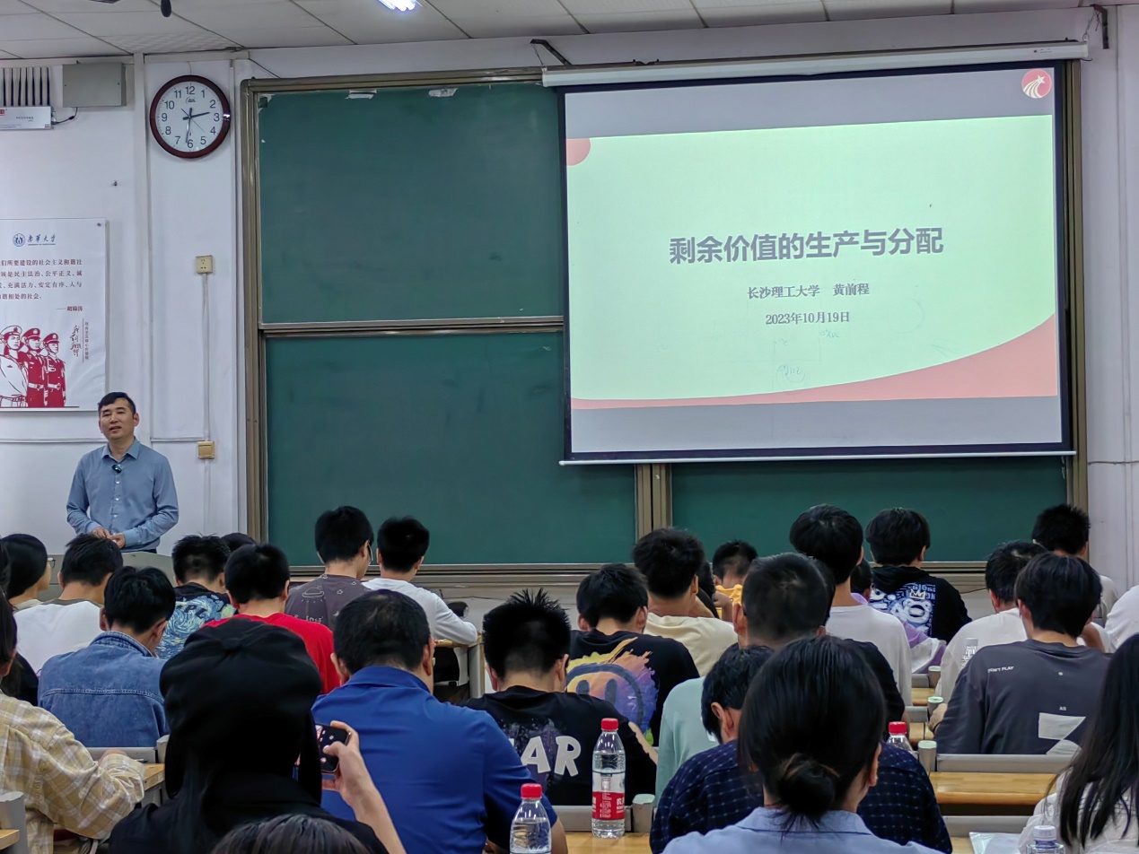 黄前程老师以“剩余价值的生产与分配”为主题,以视频“恩格斯在马克思墓前的讲话”导入课程,围绕“价值增殖目的与剩余价值的实质”“生产剩余价值的两种方法”“剩余价值的分配及利润平均化”和“剩余价值的资本化及其后果”四个方面的内容,结合社会现实案例和图表,层层递进,深入地剖析了剩余价值的生产与分配过程和最终导致的历史趋势,给同学们及与会老师们上了一堂精彩的思政课。