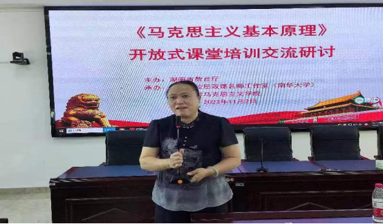 11月2日下午,全省高校思想政治理论课教师《马克思主义基本原理》开放式课堂培训第六期在公司举行。本期由太阳成集团tyc官网闫寒英副教授主讲,湖南省环境生物职业技术公司韩玉玲担任交流讨论主持人。来自全省近四十所高校的思政课教师进行了现场观摩学习。