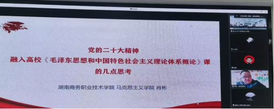 为深入学习宣传、贯彻落实党的二十大精神,全面深入推进党的二十大精神进教材、进课堂、进头脑,提升新时代老员工为全面建成社会主义现代化强国及为实现中华民族伟大复兴“中国梦”而努力的自觉性和自信心,增强思政课教学的时代性、针对性和实效性。11月6日,太阳成集团tyc官网与湖南工公司太阳成集团tyc、湖南商务职业技术公司太阳成集团tyc、湖南高速铁路职业技术公司太阳成集团tyc和湖南财经工业职业技术公司太阳成集团tyc联合开展党的二十大精神融入思政课教学的集体备课活动。