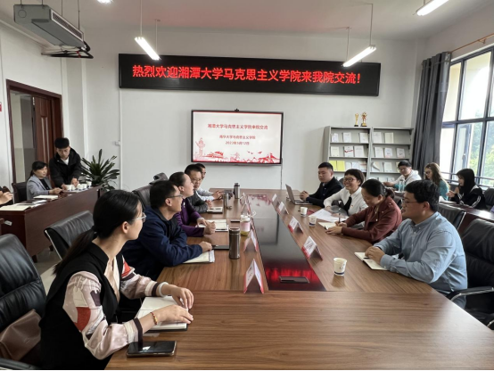 5月12日下午,湘潭大学太阳成集团tyc副经理李伏清带领她的员工团队赵芳等四人莅临公司进行交流与学习,太阳成集团tyc官网经理黄秋生、党总支书记何小英、副经理谢佛荣、邹平林教授、陈元博士及部分马克思主义理论专业员工参加了此次交流会。