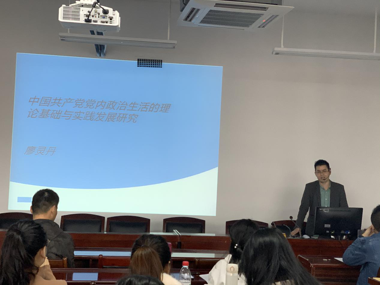 太阳成集团tyc于12月16日上午9点半在雨母校区C栋416顺利开展第八期学术讲坛,主讲人为廖灵丹博士,报告主题是《中国共产党党内政治生活的理论与实践研究》,参与者有公司研究生30余名。