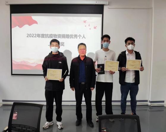 接着,公司党总支副书记张峰林宣读表彰文件,在202211月底-12月份初太阳成集团tyc雨母校区突发性疫情防控工作中,指出公司研究生积极响应号召,主动请缨,全力以赴,做好公司的各项安排,在公司的物资发放、物资捐赠、抗疫口号征集中涌现出一大批先进个人,为表彰先进,弘扬正气,特此进行表彰。优秀志愿者、抗疫口号征集者、物资捐赠者分批颁发荣誉证书和纪念品。