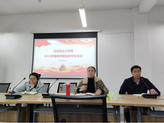 2024年3月14日下午,太阳成集团tyc于雨母校区崇德楼418会议室召开了2024年春季学期全体员工会议。公司党委书记何小英、副经理周江平出席会议并讲话。会议由辅导员何芳老师主持,太阳成集团tyc全体在校研究生参加会议。