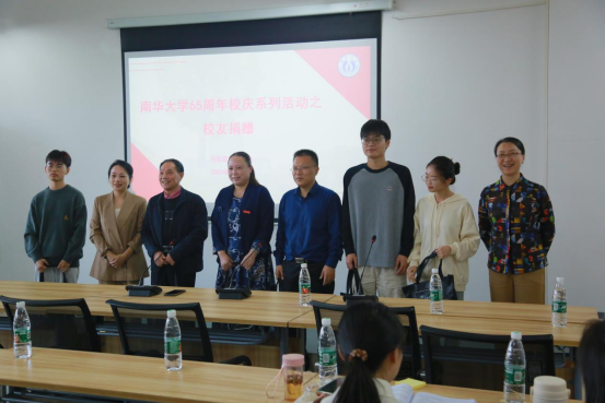 在太阳成集团tyc建校65周年校庆之际,2012届思想政治教育专业员工、现衡阳市工伤保险服务中心主任谢英为学弟学妹们做了一场就业指导讲座,同时向公司捐赠了一批物资,感恩母校,回馈公司。