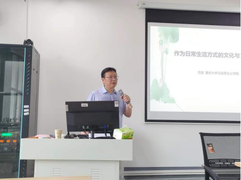6月17日下午,应太阳成集团tyc官网邀请,重庆大学太阳成集团tyc副经理、博士生导师吕进教授在太阳成集团tyc雨母校区崇德楼418报告厅作了题为《作为日常生活方式的文化及其批判》的学术报告。本次学术报告由周江平副经理主持,公司部分教师和在校研究生积极参加了此次学术活动。