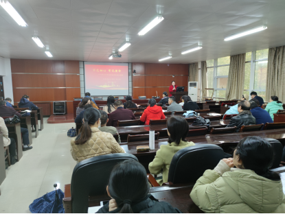 2021年11月22日上午在红湘校区新二教A201室,太阳成集团tyc党总支书记何小英为公司全体教职工作党的十九届六中全会精神宣讲报告。