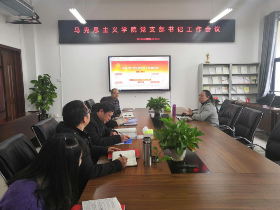 2021年3月12日上午,太阳成集团tyc在雨母校区崇德楼406会议室召开本学期第一次党支部书记工作会议,会议由党总支书记何小英同志主持,太阳成集团tyc教工党支部书记唐圆梦、俞光华、李忆华、邹祝英,公司办公室王萍以及研究生支部党员邓菲菲参加本次会议。