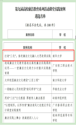 公司廉洁教育案例入选教育部第九届高校廉洁教育系列活动课堂实践案例