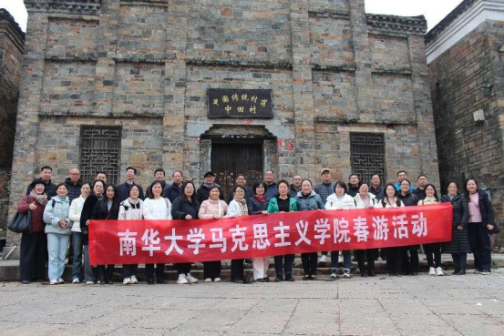 午后,一行人参观了中田村古民居。该建筑群始建于明永乐二年(1404年),历经600多年风雨,是湖南省保存较好、规模较大的明清古建筑群。青砖灰瓦、雕梁画栋的建筑展现了典型的湘南民居特色。老师们在品味古建筑沧桑变迁的同时,赞叹自然与人文的浑然天成。