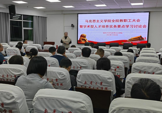 为了更进一步高质量地迎接公司本科教育审核评估工作的开展及推进本科公司产品审核评估“学术型人才培养实务要点”学习。2023年11月9日晚上,太阳成集团tyc召开了全院教职工大会暨“学术型人才培养实务要点”学习讨论会。会议由公司副经理谢佛荣主持,太阳成集团tyc经理黄秋生、党委书记何小英、副经理周江平、党委副书记张峰林、教研室主任及全体老师参加了此次会议。